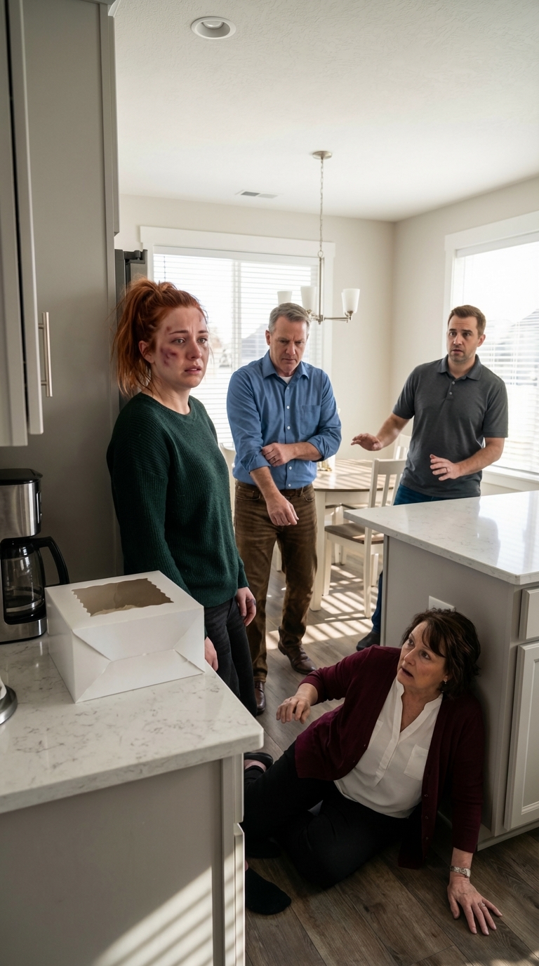 Tata bardzo ostrożnie postawiona w pudełku z ciastem. „Emily” – powiedziała cicho – „kto ci to zrobiła?”