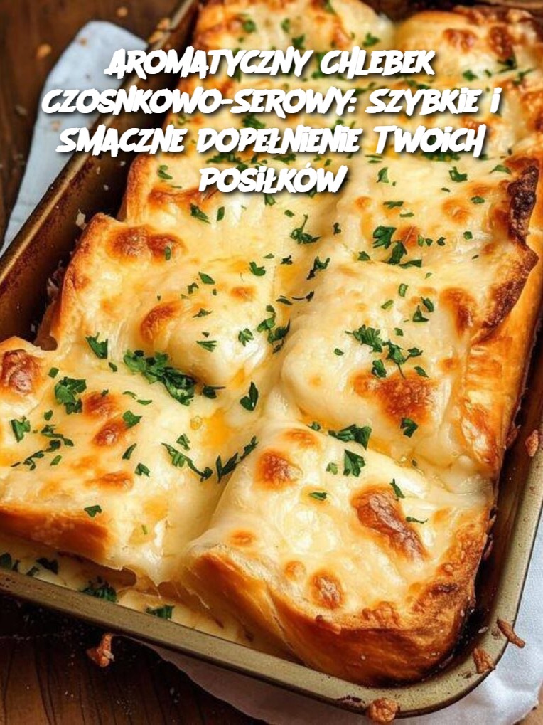 Aromatyczny chlebek czosnkowo-serowy to pyszne i szybkie dopełnienie każdego posiłku. Jego wyjątkowy smak sprawia, że jest idealnym dodatkiem do różnych dań. Wypróbuj ten przepis i ciesz się smakiem, który zachwyci wszystkich!