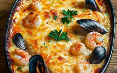 Morska rozkosz: zapiekanka z dorsza, krewetek i małży