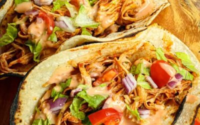 Składniki (na 4 porcje): Na nadzienie: 500 g piersi z kurczaka (ugotowanej lub upieczonej i poszarpanej) 2 łyżki oliwy z oliwek 2 ząbki czosnku –…