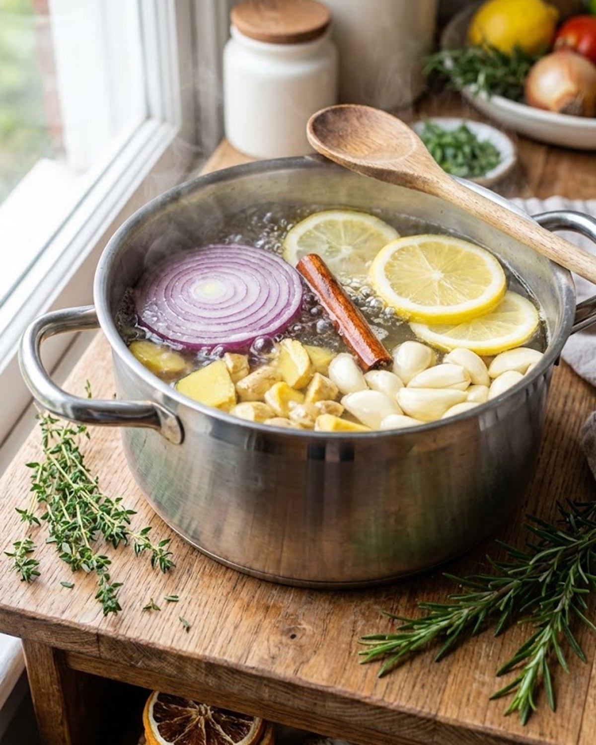 Wyobraź sobie, że wchodzisz do kuchni w chłodny poranek, a Twój nos najpierw uderza ostry smak świeżego czosnku, a następnie ciepły, korzenny aromat cynamonu i goździków, mieszający się z pikantną cytryną i ziemistym imbirem. Wrzucasz wszystko do garnka, dodajesz pokrojoną cebulę dla subtelnej słodyczy i gotujesz na wolnym ogniu. Piętnaście minut później odcedzasz parującą filiżankę, która pachnie jak naturalny środek leczniczy – kojąco, orzeźwiająco i z obietnicą. A gdyby ten prosty napar mógł wspomóc mechanizmy obronne organizmu, gdy dopada Cię przeziębienie lub spada energia?
