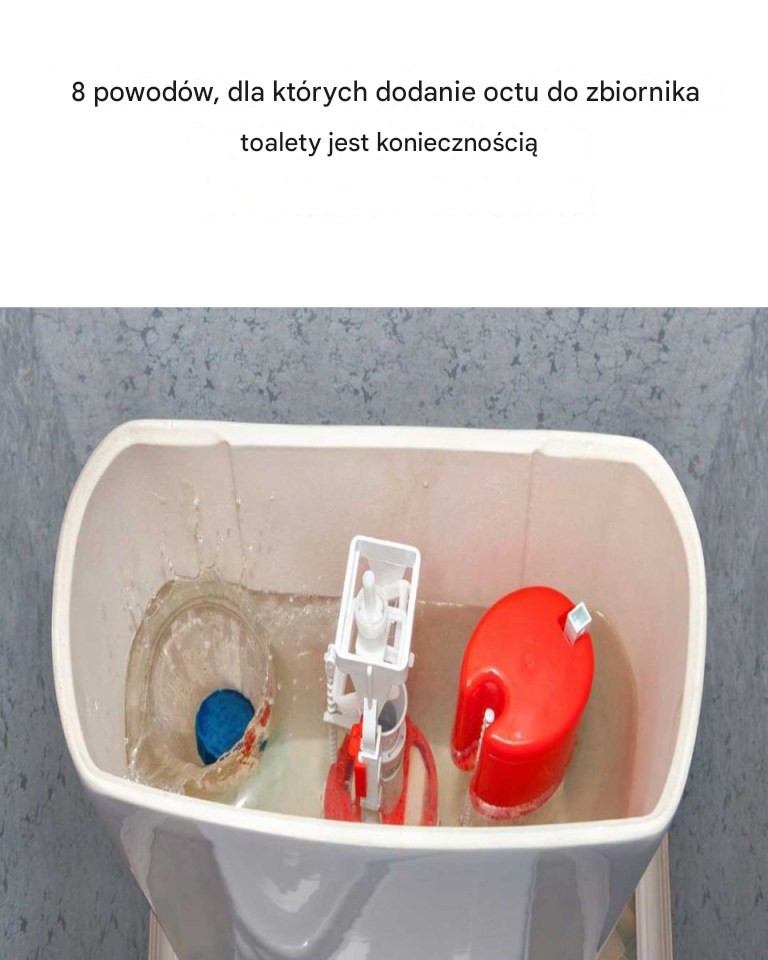 Minerały zawarte w wodzie z kranu mogą tworzyć nieestetyczne i szkodliwe osady wewnątrz zbiornika toalety. Ocet, będący kwasem, pomaga rozpuścić osady, dzięki czemu toaleta działa sprawnie.