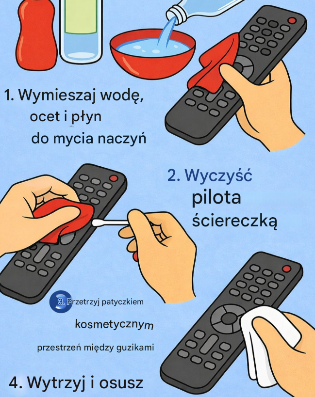 Pilot do telewizora to jeden z najczęściej dotykanych przedmiotów w domu, a jednocześnie jeden z najrzadziej czyszczonych. Codzienne użytkowanie sprawia, że na jego powierzchni gromadzą się tłuszcz z dłoni, kurz, drobinki jedzenia oraz bakterie. Naturalne środki czystości pozwalają skutecznie przywrócić mu świeżość i higienę bez użycia agresywnej chemii.