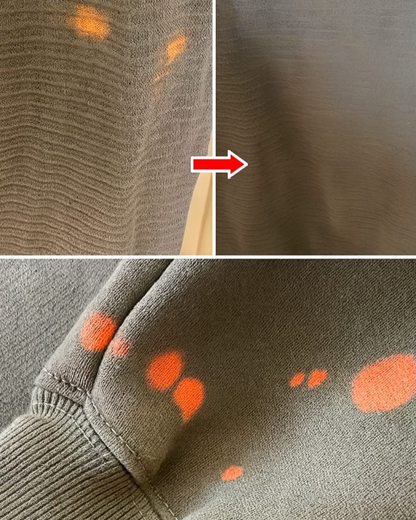 Efekt nie zawsze jest natychmiastowy, ale często plama wyraźnie blednie, a nawet znika całkowicie. Dodatkowo: ta metoda jest bardzo delikatna dla delikatnych tkanin!