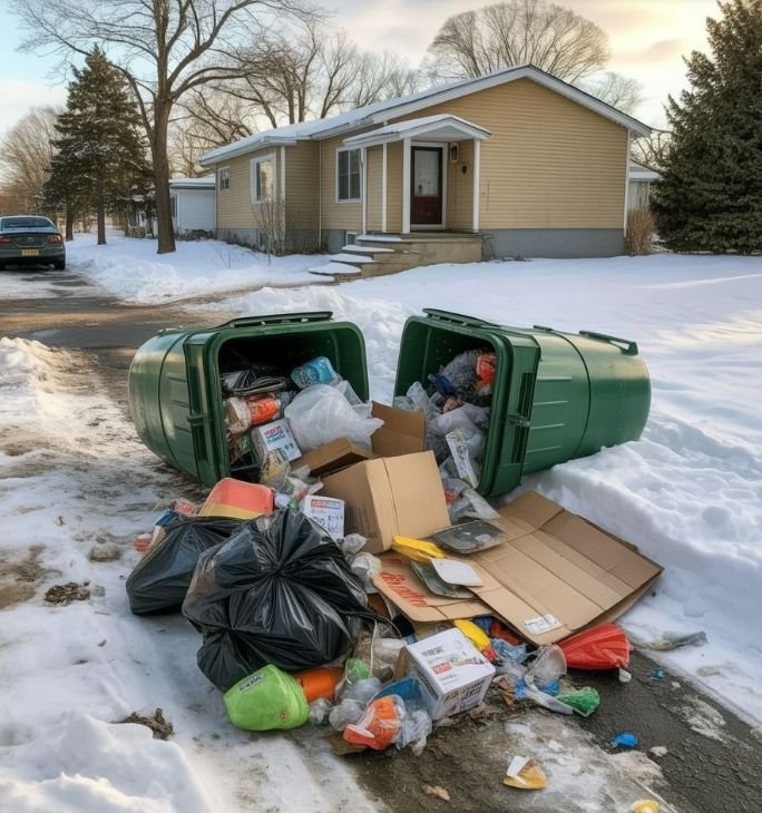 Zima jednak komplikuje życie w sposób, którego wcześniej nie rozumiałam. W naszym miasteczku odbiór śmieci zimą jest utrudniony przez ogromne zaspy śnieżne. Pługi tworzą wysokie bariery przy drogach, ograniczając miejsce, w którym można wystawiać pojemniki. Wszyscy muszą się dostosować — ustawiać kosze bliżej granicy posesji, pod odpowiednim kątem, tak aby śmieciarki miały do nich dostęp.