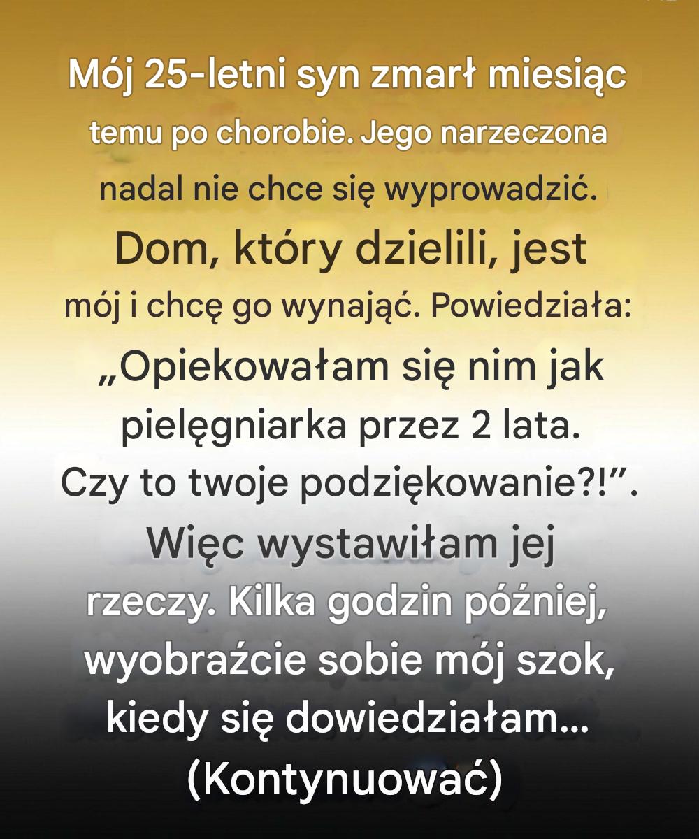 Żal wydrążał mnie w sposób, którego sam nie poznawałem. Pośród tej mgły jego narzeczona wciąż mieszkała w domu, który wspólnie wynajmowali – domu, który prawnie należał do mnie. Chciałem go wynająć, częściowo ze względów finansowych, ale głównie dlatego, że przejście obok jego pustego pokoju było nie do zniesienia. Kiedy powiedziałem jej, że musi odejść, spojrzała na mnie czerwonymi, bezsennymi oczami i powiedziała: „Opiekowałam się nim przez dwa lata jak pielęgniarka. Czy to naprawdę twoja wdzięczność?”. Nie odpowiedziałem. Zamiast tego wystawiłem jej rzeczy na zewnątrz. Wtedy myślałem, że się chronię. Nie miałem pojęcia, że mój smutek zaślepia mnie na wszystko, co po cichu robiła.