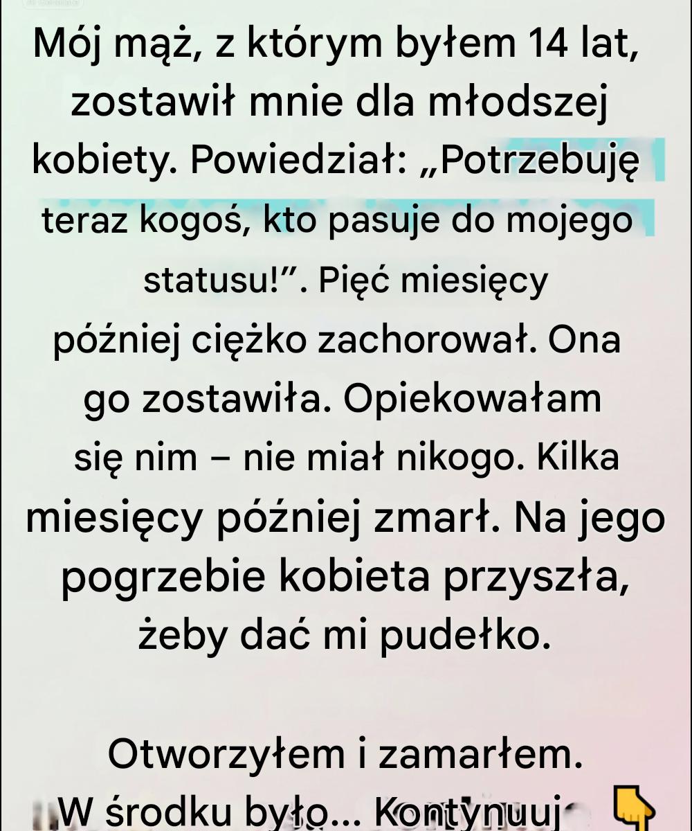 Po czternastu latach małżeństwa mój mąż wyszedł z domu z walizką w jednej ręce i wersją samego siebie, którą ledwo rozpoznawałam w drugiej. Nie było żadnej kłótni, żadnego dramatycznego rozpadu. Po prostu powolna zmiana, której nie chciałam widzieć – nowe garnitury, dłuższe godziny pracy, nagła obsesja na punkcie wizerunku i wpływów.
