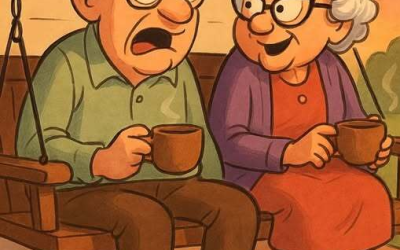 Starsze małżeństwo, Bert i Edna, siedzą na huśtawce na ganku!