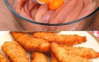 Składniki 📋: 🍗 500g filetów z kurczaka (pokrojonych w paski) 🥚 3 żółtka 🍞 Bułka tarta do panierowania 🧂 Sól,…