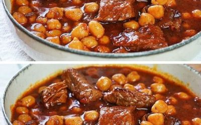 Składniki (4–6 porcji): • 400 g ciecierzycy (namoczonej przez noc lub z puszki) • 500 g wołowiny gulaszowej (np. karkówka…