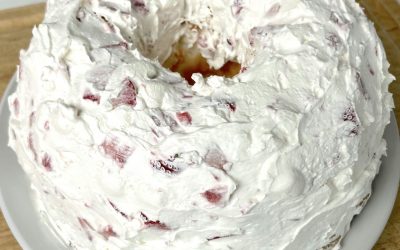 Ciasto Angel z truskawkami Składniki: – 1 ciasto Angel Food Bundt (domowe lub kupione w sklepie) – 16 uncji Cool…
