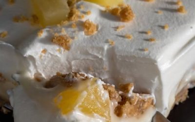 Pyszny i orzeźwiający deser z ciastem graham cracker, kremowym nadzieniem ananasowym i bitą śmietaną Rozkoszuj się tymi kremowymi kwadracikami ananasowymi,…