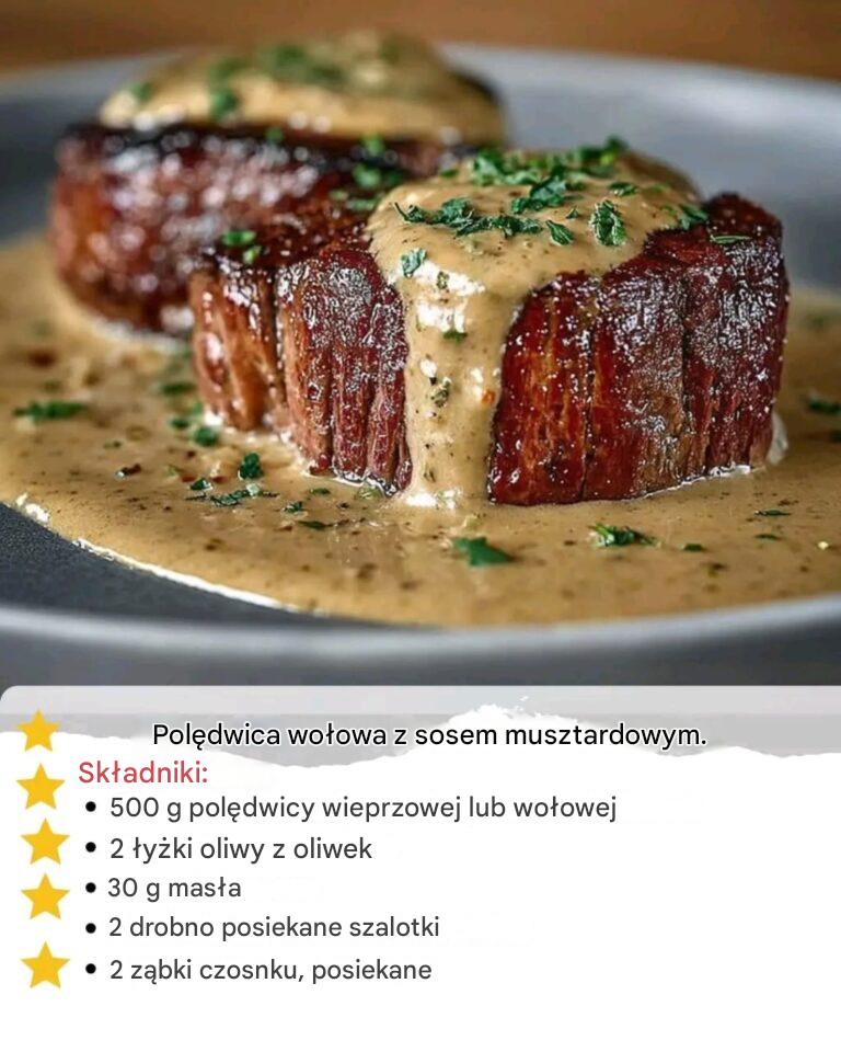 Polędwica wołowa w sosie musztardowym to wyrafinowane i aromatyczne danie, które ukazuje wyjątkową delikatność polędwicy wołowej , podawanej z kremowym i lekko pikantnym sosem musztardowym. To danie idealnie sprawdzi się na eleganckiej kolacji, rodzinnym obiedzie lub na wyjątkowej okazji, oferując harmonijną równowagę bogactwa, słodyczy i głębi aromatu. Podawane z duszonymi warzywami, pieczonymi ziemniakami lub kremowym puree ziemniaczanym, stanowi kompletny i pyszny posiłek.