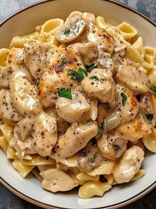 Pyszne połączenie delikatnego kurczaka, ziemistych grzybów i kremowego sosu Marsala zmieszane z makaronem to pocieszające i eleganckie danie.