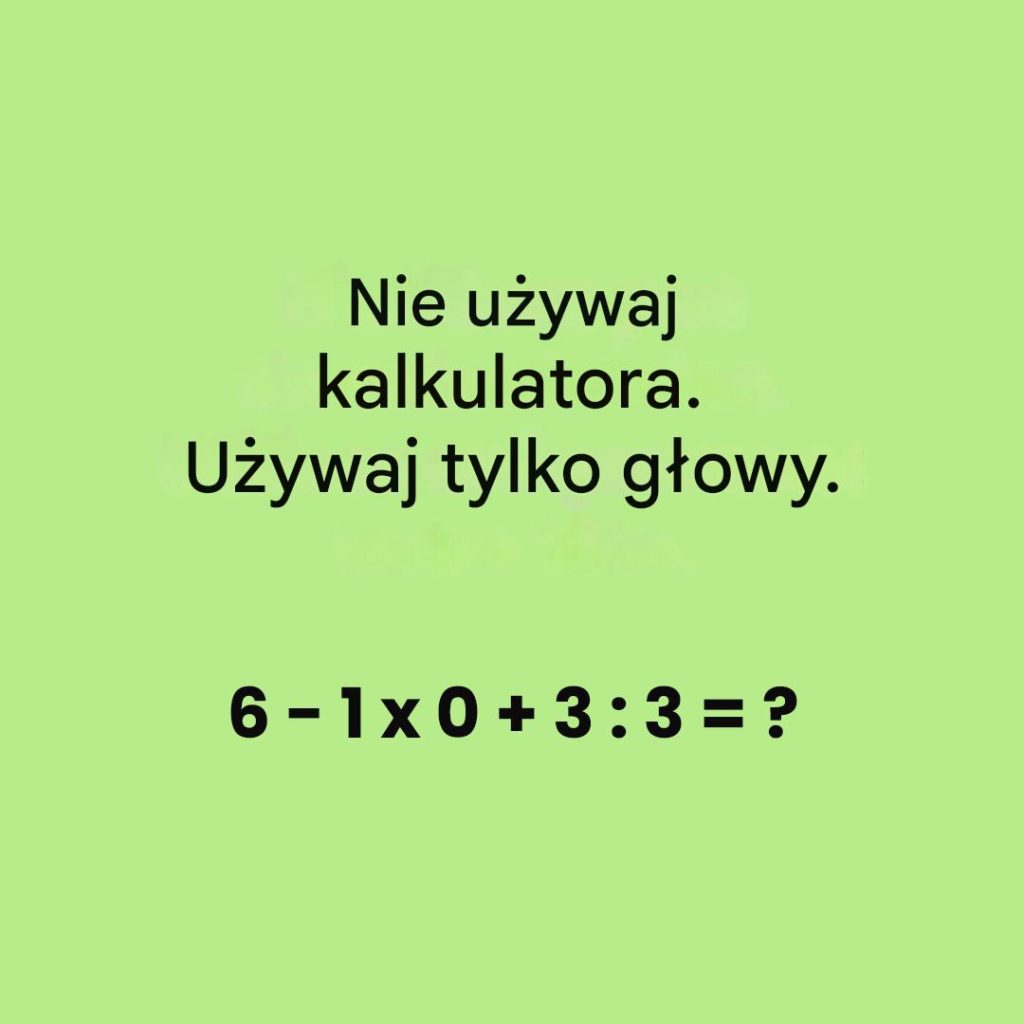 No dalej, cofnijmy się w czasie i przenieśmy do klas gimnazjum! Pamiętasz te słynne lekcje matematyki, gdzie nauczyciel w nieskończoność powtarzał zasady kolejności działań? Jeśli kiedykolwiek wzdychałeś do zadań matematycznych w pamięci, to wyzwanie jest dla Ciebie. I może pobudzić Twój logiczny umysł (albo ducha rywalizacji!).