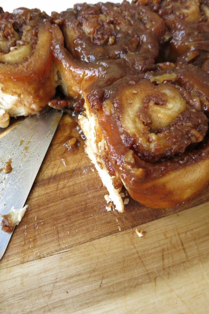Sos pekanowo-toffi jest ukoronowaniem tych słodkich bułeczek. Wykonany z roztopionego masła, brązowego cukru, melasy i śmietany kremówki, ten sos wlewa się do formy do pieczenia przed dodaniem bułeczek. Podczas pieczenia bułeczek sos karmelizuje się i przykleja do bułeczek, tworząc słodką i lepką polewę.