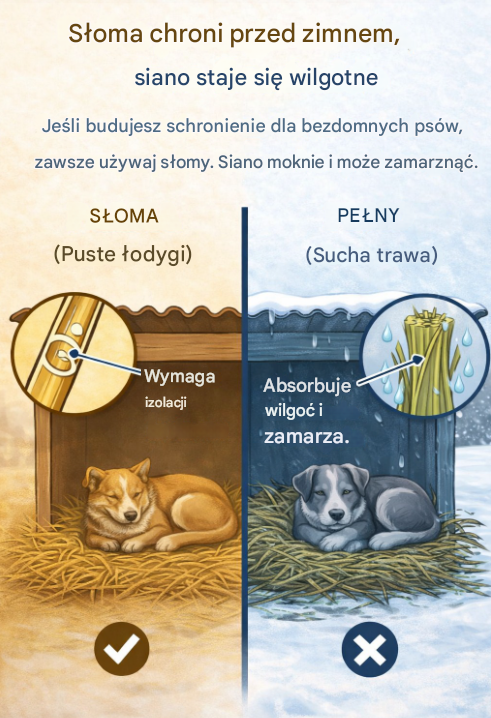 W zimowych warunkach wielu opiekunów psów zadaje sobie to samo, bardzo praktyczne pytanie: co będzie lepsze do ocieplenia i wyścielenia schronienia psa — słoma czy siano? To pozornie dostępny wybór może mieć realny wpływ na komfort zasilania w chłodnych dniach, a także na utrzymanie czystości i takie elementy w budzie lub innego rodzaju legowiskach.