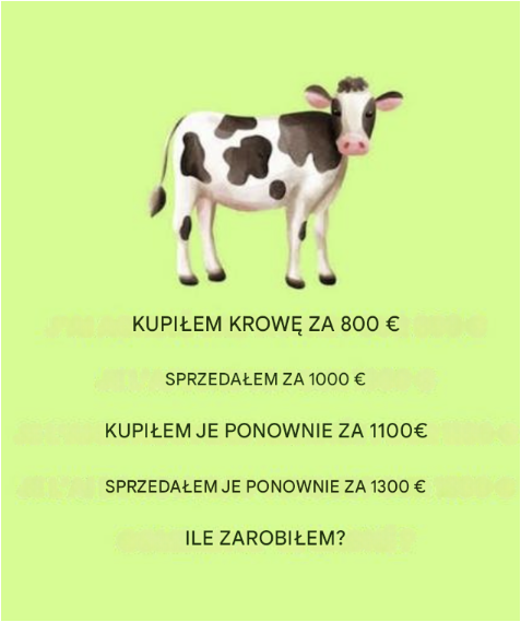Wydaje się to niewinną zagadką, niemal dziecinną zabawą… A jednak ten bardzo prosty scenariusz kupowania i sprzedawania krów często podważa naszą logikę księgową. Gotowy na łamanie sobie głowy? Wyrusz w małą podróż przez liczby… z nutą humoru.