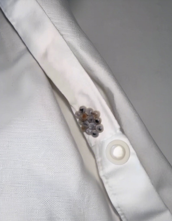 Z początkiem, że to jaja owadów. Były maleńkie, idealne ułożone; ktoś je tam określił.