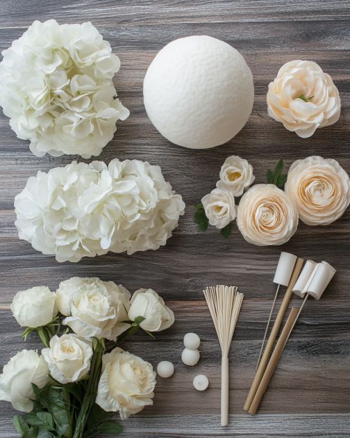Tę kwiatową kulę styropianową można stylizować jako centralny element na stole na werandzie lub zawiesić na suficie jako świąteczną ozdobę. Połącz ją z lampkami choinkowymi i innymi naturalnymi elementami, takimi jak szyszki lub zieleń, aby stworzyć spójny i zachęcający wygląd. Rozważ użycie palety kolorów, która uzupełnia wygląd zewnętrzny Twojego domu lub motyw świątecznych dekoracji.
